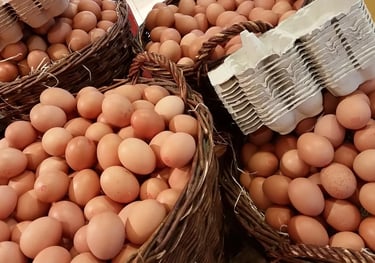 Chickens are fed diets that complement foraging, minimizing processed feeds and avoiding GMOs, hormones, or antibiotics.